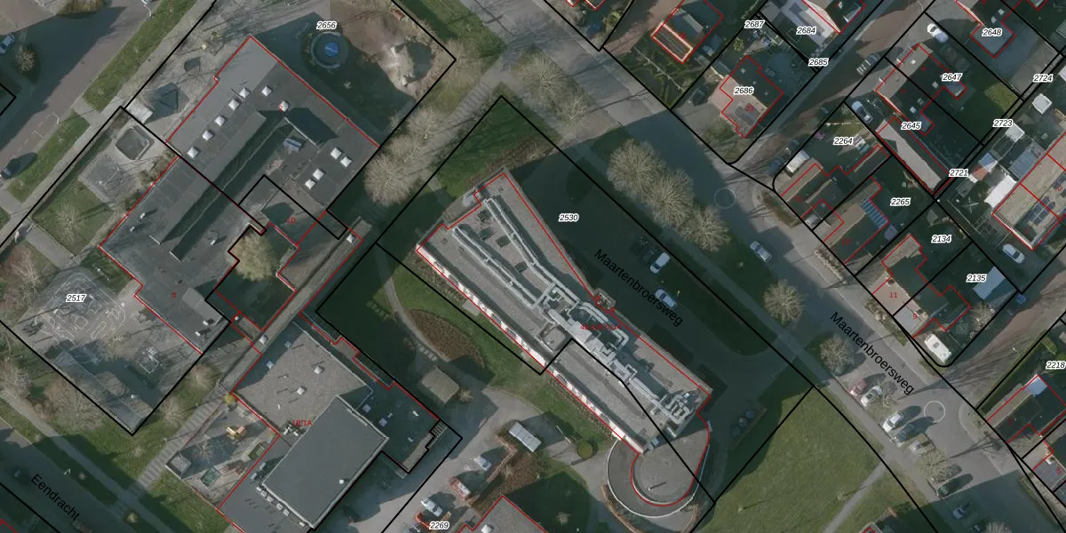 Het perceel waarop Maartenbroersweg 42-K-2007 staat heeft een oppervlakte van 2420 m². Dit is een zeer groot perceel. De perceeloppervlakte wordt geregistreerd door het Kadaster. Gedetailleerde informatie over de maten van dit perceel kunt u vinden in het rapport Kadastrale kaart met maatvoering van Maartenbroersweg 42-K-2007.