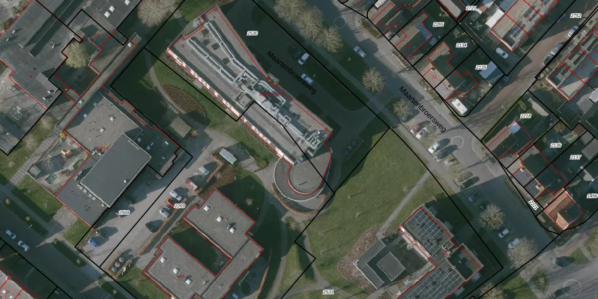 Het perceel waarop Maartenbroersweg 42-K-2012 staat heeft een oppervlakte van 4320 m². Dit is een zeer groot perceel. De perceeloppervlakte wordt geregistreerd door het Kadaster. Gedetailleerde informatie over de maten van dit perceel kunt u vinden in het rapport Kadastrale kaart met maatvoering van Maartenbroersweg 42-K-2012.
