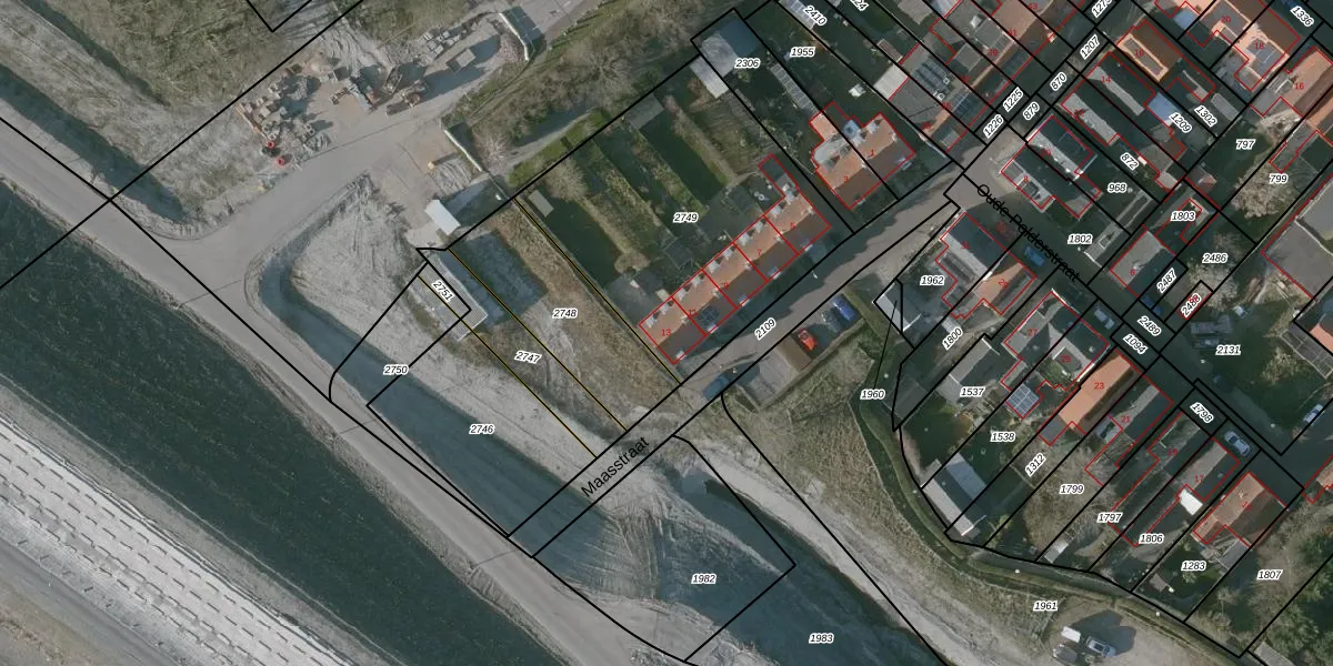 Maasstraat 13 is gelegen op kadastraal perceel KNG00H2749. Deze kadastrale aanduiding is uniek en wordt gebruikt door het Kadaster om eigendomsrechten en andere zakelijke rechten vast te leggen. Het perceel maakt onderdeel uit van de kadastrale gemeente Kruiningen.