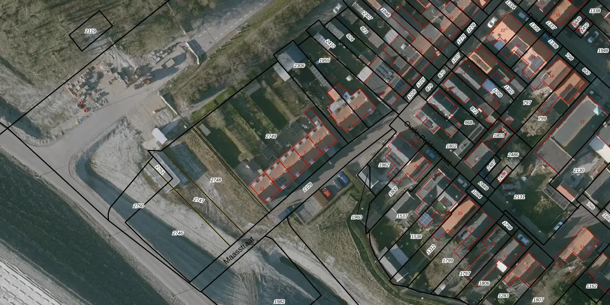 Het perceel waarop Maasstraat 7 staat heeft een oppervlakte van 1279 m². Dit is een zeer groot perceel. De perceeloppervlakte wordt geregistreerd door het Kadaster. Gedetailleerde informatie over de maten van dit perceel kunt u vinden in het rapport Kadastrale kaart met maatvoering van Maasstraat 7.