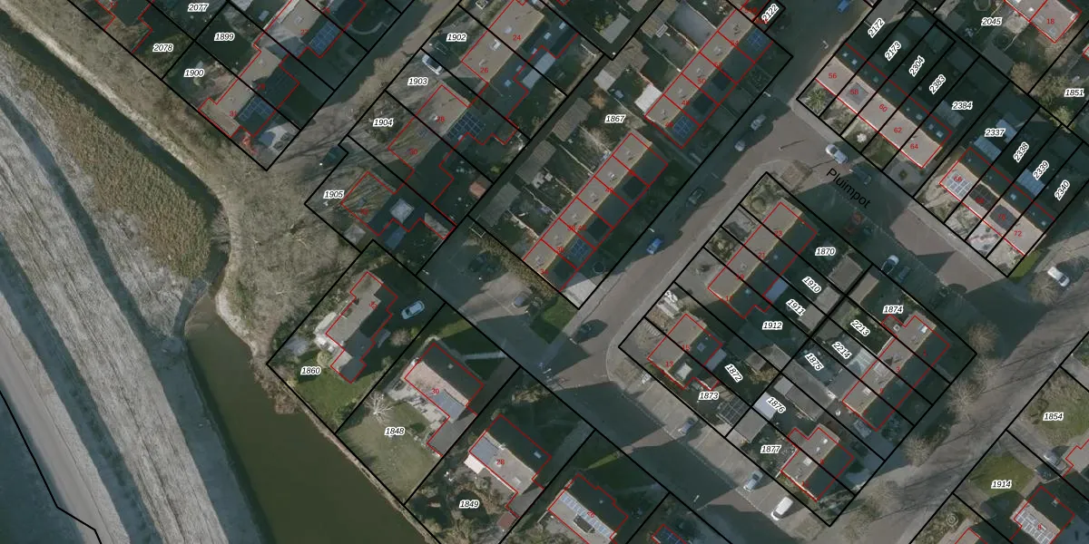 Het perceel waarop Pluimpot 34 staat heeft een oppervlakte van 1605 m². Dit is een zeer groot perceel. De perceeloppervlakte wordt geregistreerd door het Kadaster. Gedetailleerde informatie over de maten van dit perceel kunt u vinden in het rapport Kadastrale kaart met maatvoering van Pluimpot 34.