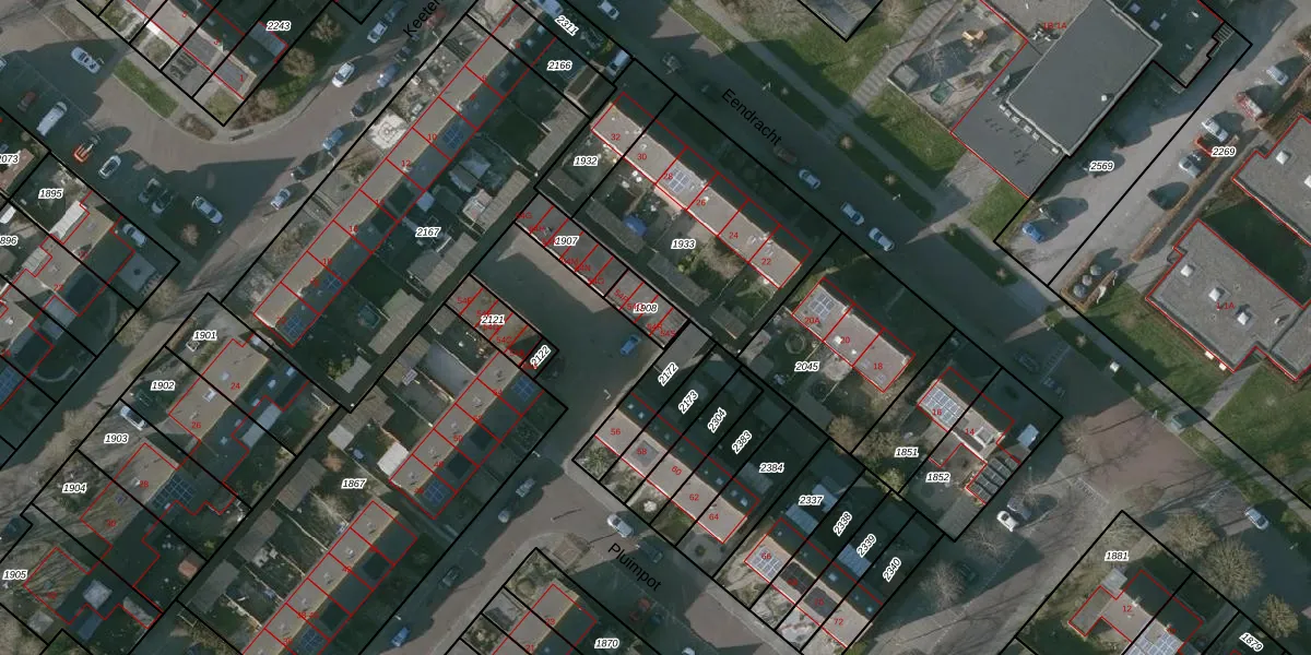 Het perceel waarop Pluimpot 54-R staat heeft een oppervlakte van 72 m². Dit is een klein perceel. De perceeloppervlakte wordt geregistreerd door het Kadaster. Gedetailleerde informatie over de maten van dit perceel kunt u vinden in het rapport Kadastrale kaart met maatvoering van Pluimpot 54-R.