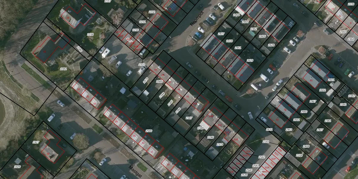 Gebruik de zoekbalk of klik op een perceel voor informatie over de adressen binnen dit perceel.
