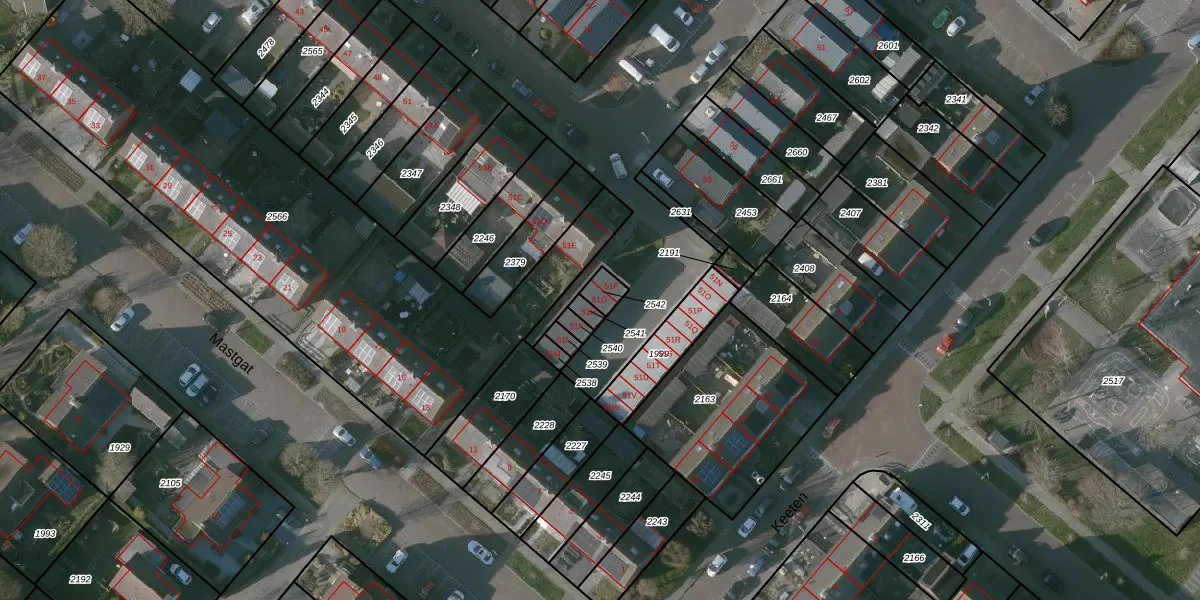 Het adres is gelegen op perceel 2542 in de sectie H en de kadastrale gemeente Kruiningen. De kadastrale aanduiding is aldus KNG00-H-2542. De gemiddelde perceelgrootte in Kruiningen is 1,5 ha. Dit perceel is kleiner: de perceeloppervlakte bedraagt 36 m². Het kleinste perceel in de kadastrale gemeente is 1 m² groot. De grootste perceeloppervlakte is 21,84 km². Op het perceel zijn 2 adressen aanwezig. In de Basisregistratie Kadaster (BRK) werden de grenzen van het perceel geregistreerd op 07-02-2013.