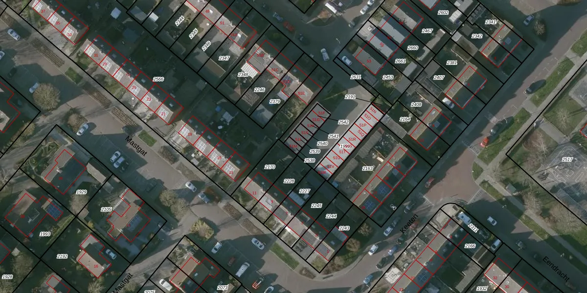 Gebruik de zoekbalk of klik op een perceel voor informatie over de adressen binnen dit perceel.