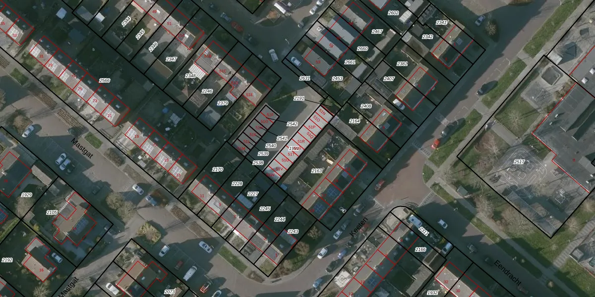Het adres is gelegen op perceel 1999 in de sectie H en de kadastrale gemeente Kruiningen. De kadastrale aanduiding is aldus KNG00-H-1999. De gemiddelde perceelgrootte in Kruiningen is 1,5 ha. Dit perceel is kleiner: de perceeloppervlakte bedraagt 180 m². Het kleinste perceel in de kadastrale gemeente is 1 m² groot. De grootste perceeloppervlakte is 21,84 km². Er zijn 10 adressen aanwezig op het perceel. De laatste wijziging in het de Basisregistratie Kadaster (BRK) was op 26-10-2010.