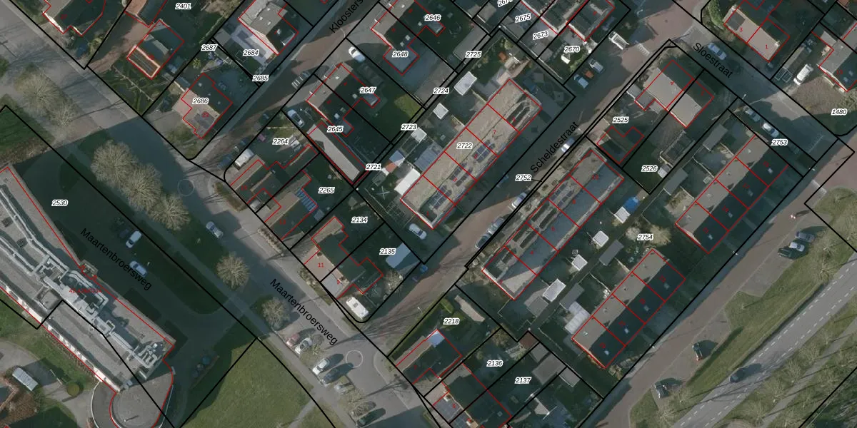 Scheldestraat 1 is gelegen op kadastraal perceel KNG00H2722. Deze kadastrale aanduiding is uniek en wordt gebruikt door het Kadaster om eigendomsrechten en andere zakelijke rechten vast te leggen. Het perceel maakt onderdeel uit van de kadastrale gemeente Kruiningen.