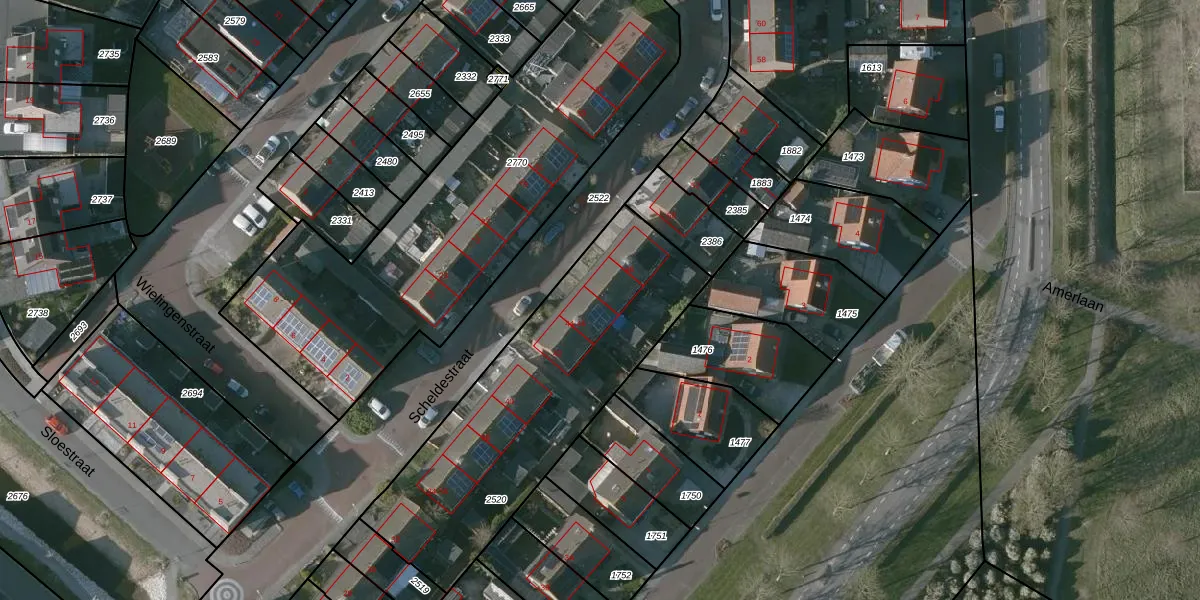 Het perceel waarop Scheldestraat 46 staat heeft een oppervlakte van 1292 m². Dit is een zeer groot perceel. De perceeloppervlakte wordt geregistreerd door het Kadaster. Gedetailleerde informatie over de maten van dit perceel kunt u vinden in het rapport Kadastrale kaart met maatvoering van Scheldestraat 46.