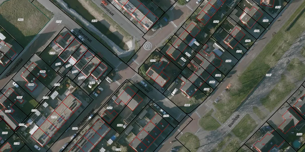 Sloestraat 3 is gelegen op kadastraal perceel KNG00H2521. Deze kadastrale aanduiding is uniek en wordt gebruikt door het Kadaster om eigendomsrechten en andere zakelijke rechten vast te leggen. Het perceel maakt onderdeel uit van de kadastrale gemeente Kruiningen.