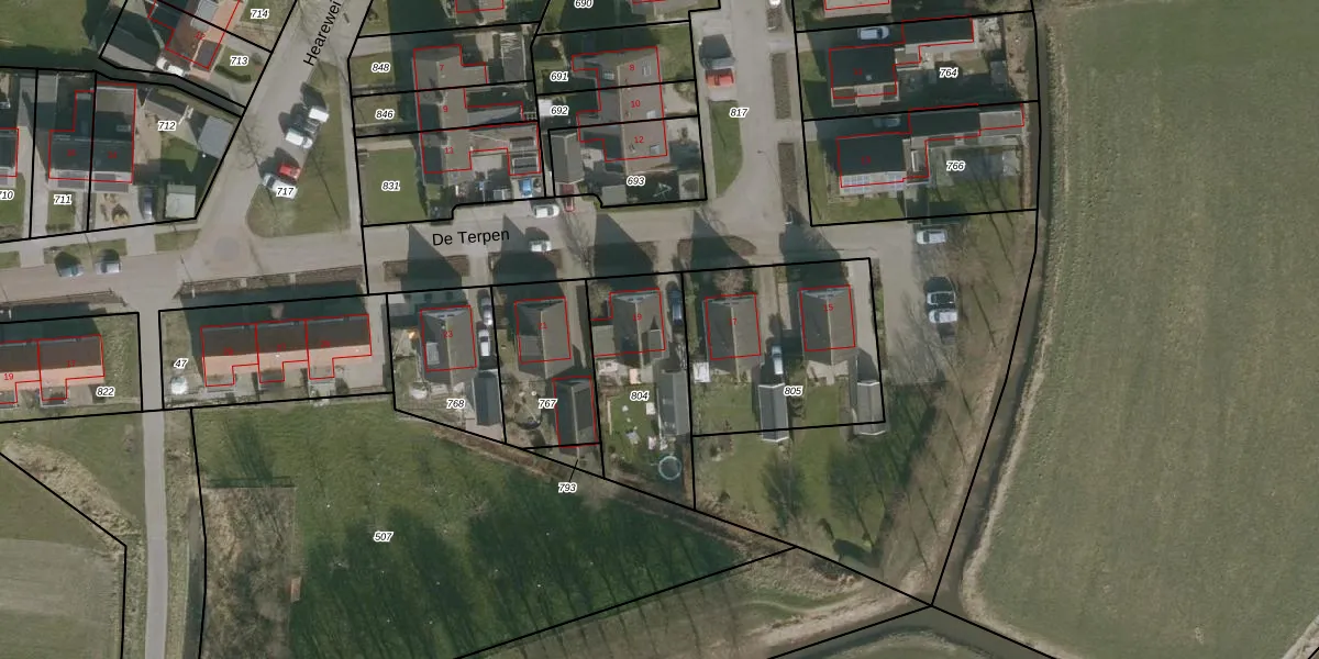 Het perceel waarop De Terpen 19 staat heeft een oppervlakte van 470 m². Dit is een groot perceel. De perceeloppervlakte wordt geregistreerd door het Kadaster. Gedetailleerde informatie over de maten van dit perceel kunt u vinden in het rapport Kadastrale kaart met maatvoering van De Terpen 19.