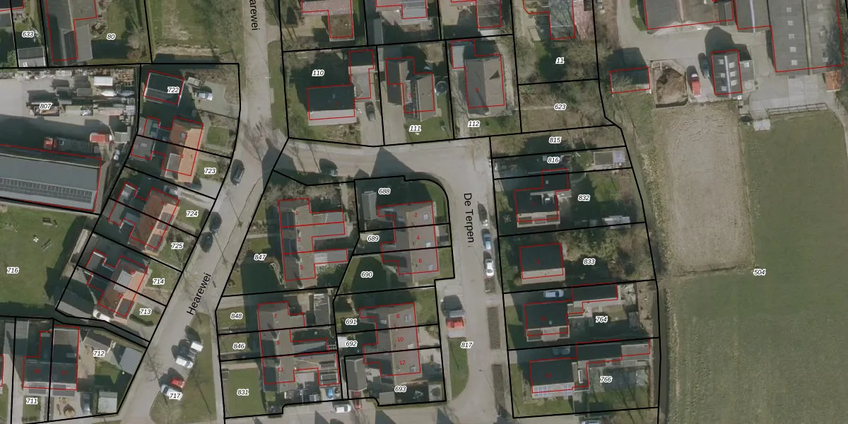 Gebruik de zoekbalk of klik op een perceel voor informatie over de adressen binnen dit perceel.