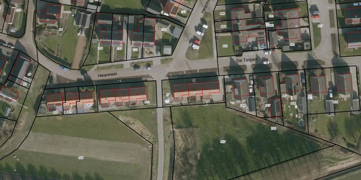 Het perceel waarop De Terpen 29 staat heeft een oppervlakte van 525 m². Dit is een groot perceel. De perceeloppervlakte wordt geregistreerd door het Kadaster. Gedetailleerde informatie over de maten van dit perceel kunt u vinden in het rapport Kadastrale kaart met maatvoering van De Terpen 29.