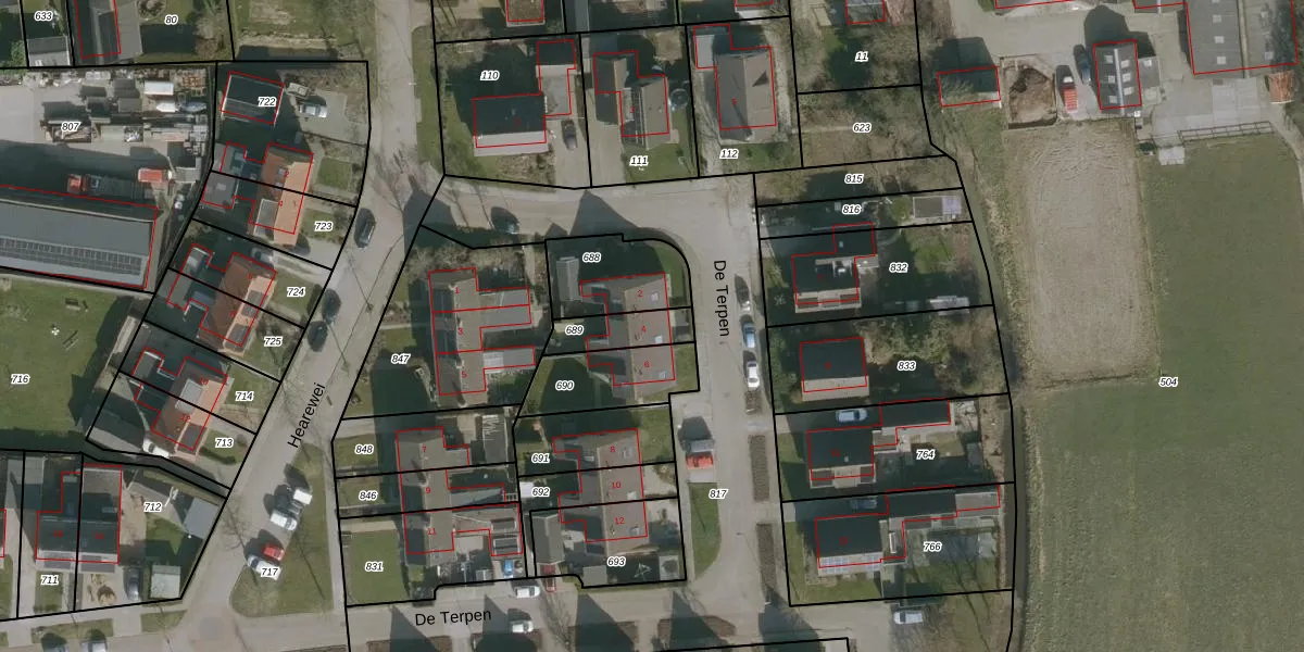 Het perceel waarop De Terpen 4 staat heeft een oppervlakte van 120 m². Dit is een middelgroot perceel. De perceeloppervlakte wordt geregistreerd door het Kadaster. Gedetailleerde informatie over de maten van dit perceel kunt u vinden in het rapport Kadastrale kaart met maatvoering van De Terpen 4.