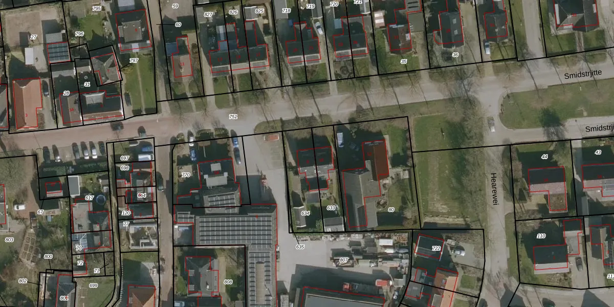 Het perceel waarop Smidstrjitte 8 staat heeft een oppervlakte van 323 m². Dit is een groot perceel. De perceeloppervlakte wordt geregistreerd door het Kadaster. Gedetailleerde informatie over de maten van dit perceel kunt u vinden in het rapport Kadastrale kaart met maatvoering van Smidstrjitte 8.