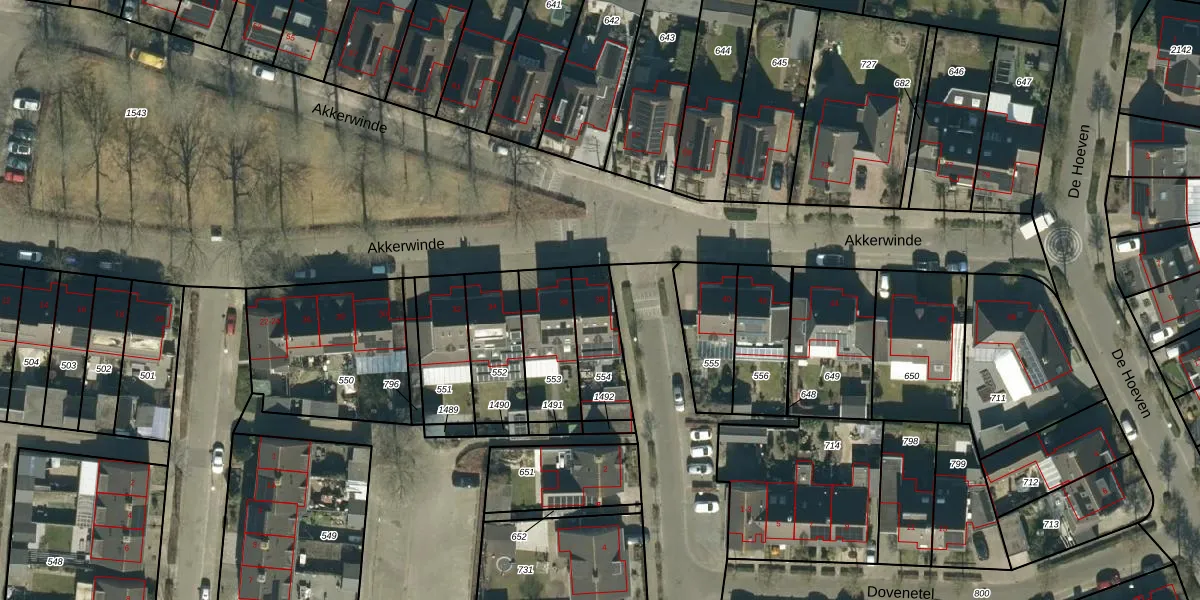 Gebruik de zoekbalk of klik op een perceel voor informatie over de adressen binnen dit perceel.