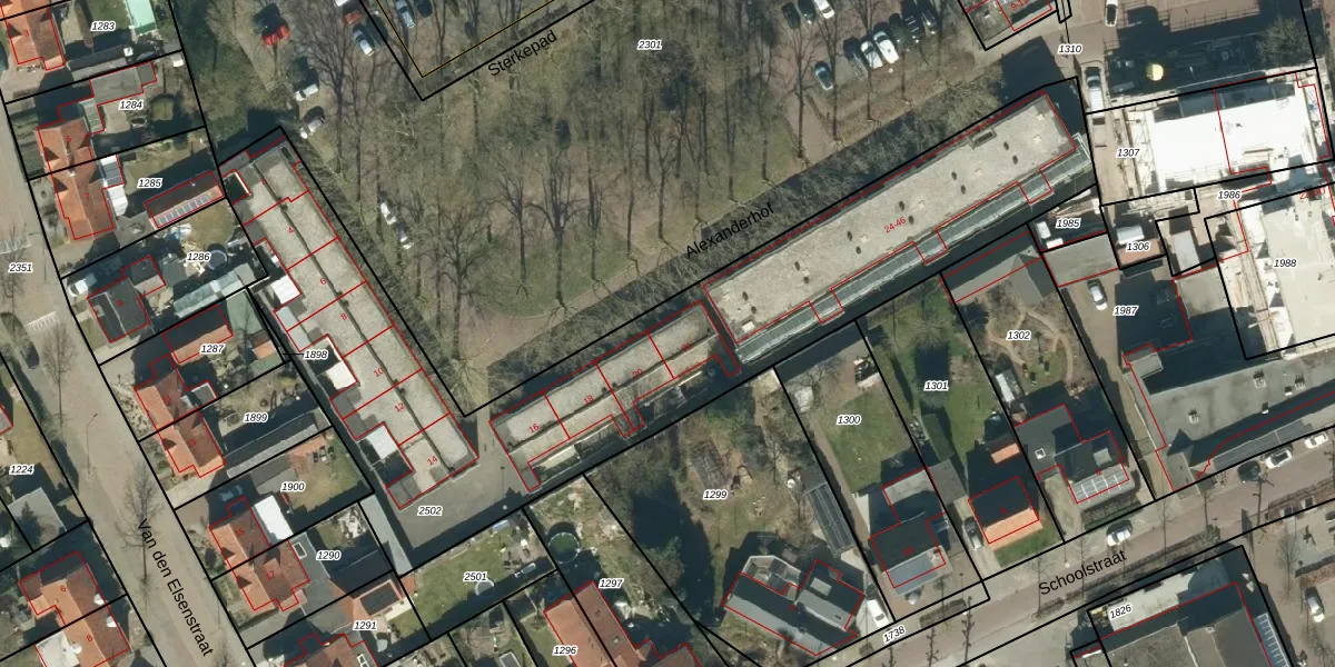 Alexanderhof 22 is gelegen op kadastraal perceel HGL04F2502. Deze kadastrale aanduiding is uniek en wordt gebruikt door het Kadaster om eigendomsrechten en andere zakelijke rechten vast te leggen. Het perceel maakt onderdeel uit van de kadastrale gemeente Hoogeloon.
