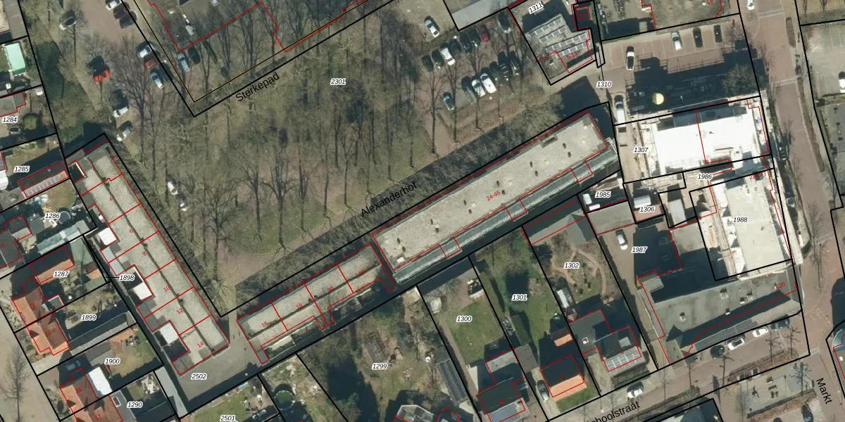 Het perceel waarop Alexanderhof 24 staat heeft een oppervlakte van 2767 m². Dit is een zeer groot perceel. De perceeloppervlakte wordt geregistreerd door het Kadaster. Gedetailleerde informatie over de maten van dit perceel kunt u vinden in het rapport Kadastrale kaart met maatvoering van Alexanderhof 24.