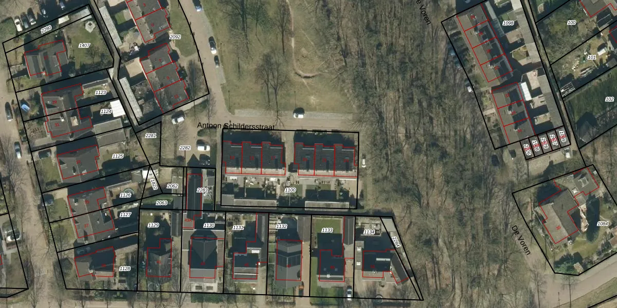 Het perceel waarop Antoon Schildersstraat 19 staat heeft een oppervlakte van 1100 m². Dit is een zeer groot perceel. De perceeloppervlakte wordt geregistreerd door het Kadaster. Gedetailleerde informatie over de maten van dit perceel kunt u vinden in het rapport Kadastrale kaart met maatvoering van Antoon Schildersstraat 19.