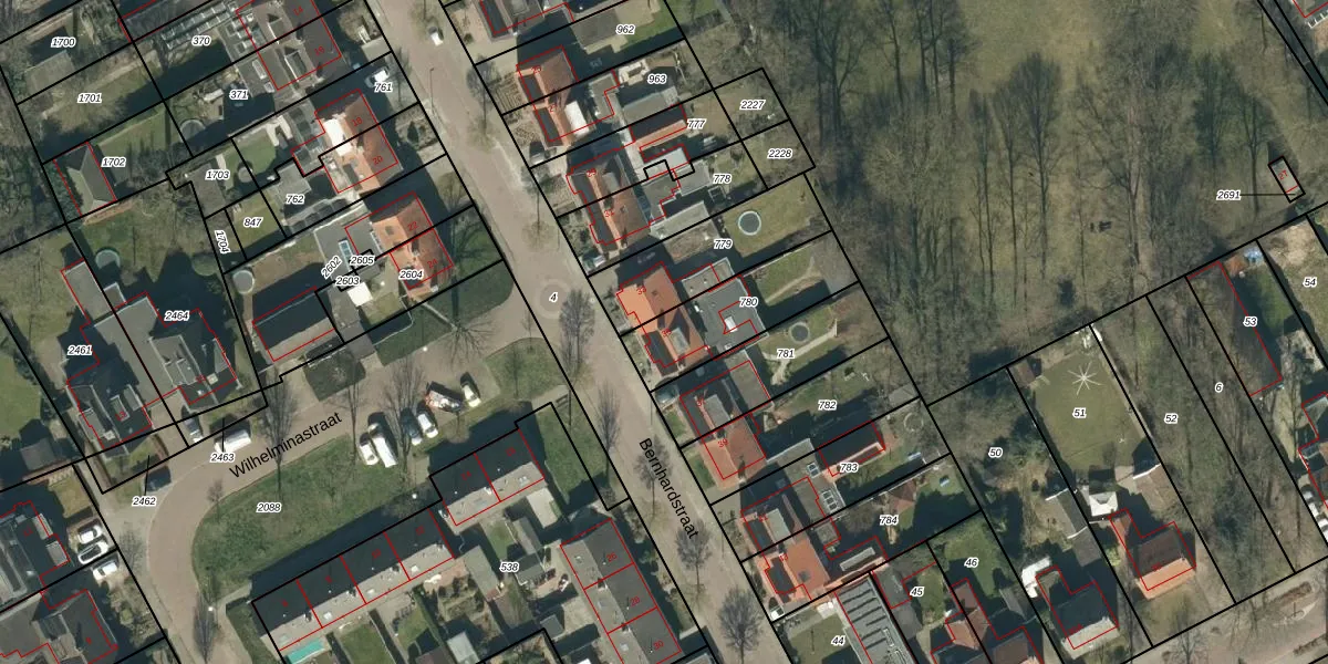 Gebruik de zoekbalk of klik op een perceel voor informatie over de adressen binnen dit perceel.
