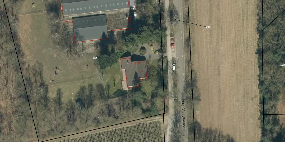 Burg. Van Woenseldreef 1 is gelegen op kadastraal perceel HGL04H896. Deze kadastrale aanduiding is uniek en wordt gebruikt door het Kadaster om eigendomsrechten en andere zakelijke rechten vast te leggen. Het perceel maakt onderdeel uit van de kadastrale gemeente Hoogeloon.
