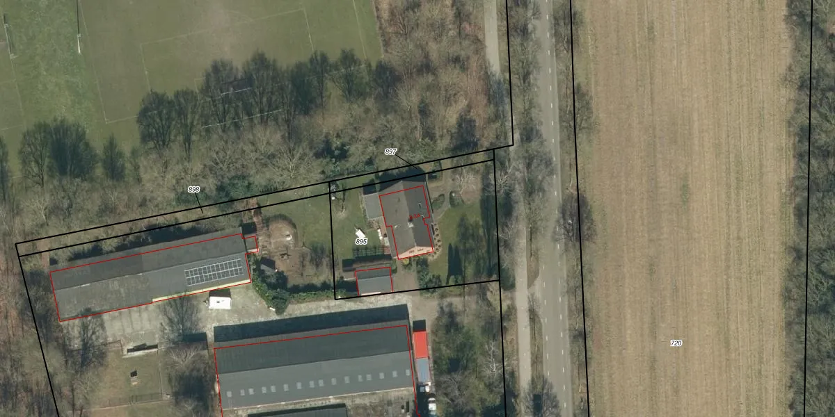 Het adres is gelegen op perceel 895 in de sectie H en de kadastrale gemeente Hoogeloon. De kadastrale aanduiding is aldus HGL04-H-895. De gemiddelde perceelgrootte in Hoogeloon is 5343,81 m². Dit perceel is kleiner: de perceeloppervlakte bedraagt 1075 m². Het grootste perceel in de kadastrale gemeente is 4,36 km². Het kleinste perceel heeft een oppervlakte van 0 m². Op het perceel liggen in totaal 2 adressen. De laatste wijziging in het de Basisregistratie Kadaster (BRK) was op 17-03-2008.