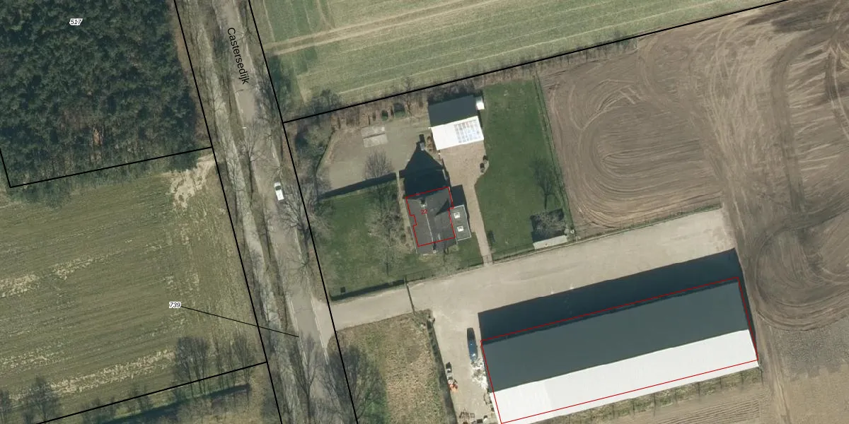 Castersedijk 22 is gelegen op kadastraal perceel HGL04H961. Deze kadastrale aanduiding is uniek en wordt gebruikt door het Kadaster om eigendomsrechten en andere zakelijke rechten vast te leggen. Het perceel maakt onderdeel uit van de kadastrale gemeente Hoogeloon.