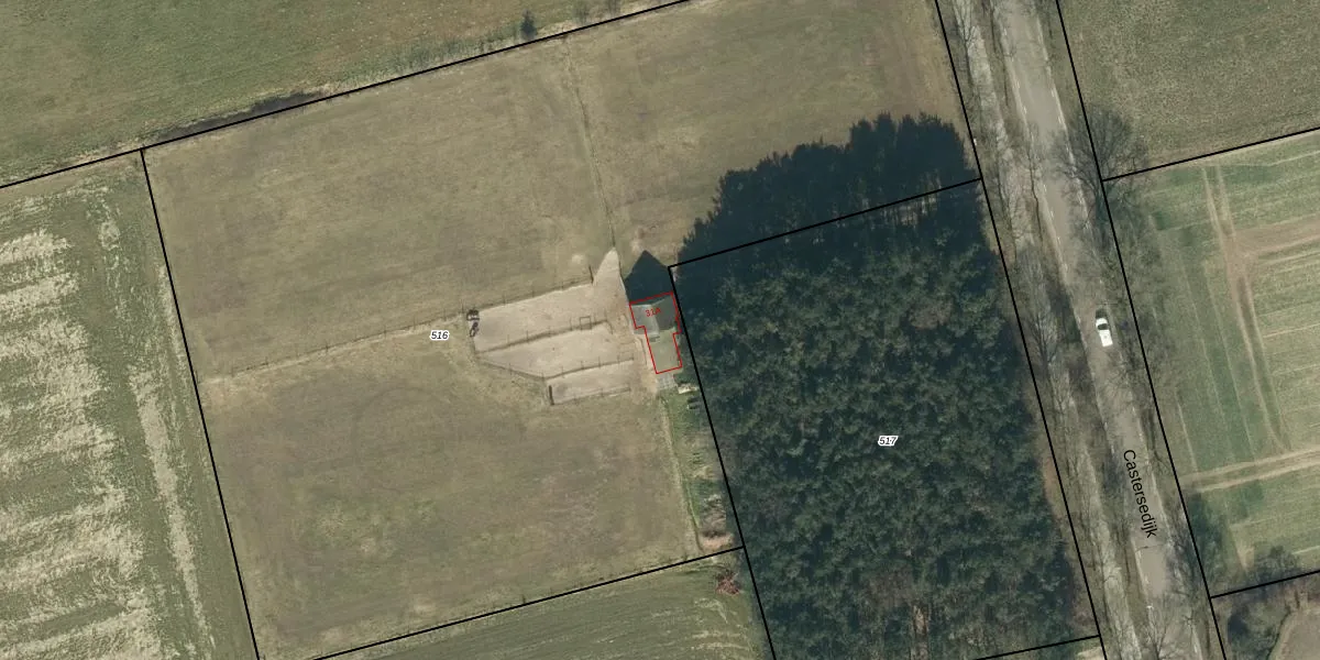 Castersedijk 31-A is gelegen op kadastraal perceel HGL04H516. Deze kadastrale aanduiding is uniek en wordt gebruikt door het Kadaster om eigendomsrechten en andere zakelijke rechten vast te leggen. Het perceel maakt onderdeel uit van de kadastrale gemeente Hoogeloon.