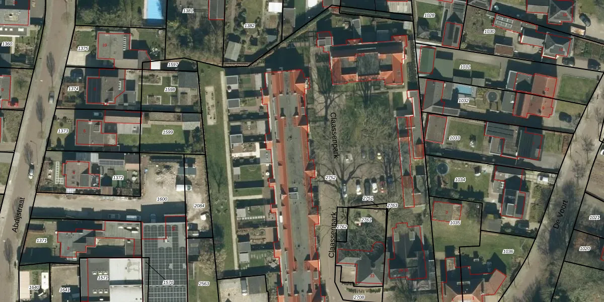 Het perceel waarop Claassenpark 15 staat heeft een oppervlakte van 7584 m². Dit is een zeer groot perceel. De perceeloppervlakte wordt geregistreerd door het Kadaster. Gedetailleerde informatie over de maten van dit perceel kunt u vinden in het rapport Kadastrale kaart met maatvoering van Claassenpark 15.