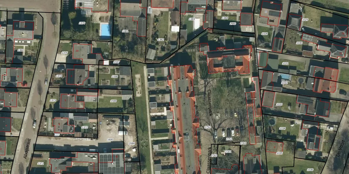 Het perceel waarop Claassenpark 20 staat heeft een oppervlakte van 7584 m². Dit is een zeer groot perceel. De perceeloppervlakte wordt geregistreerd door het Kadaster. Gedetailleerde informatie over de maten van dit perceel kunt u vinden in het rapport Kadastrale kaart met maatvoering van Claassenpark 20.