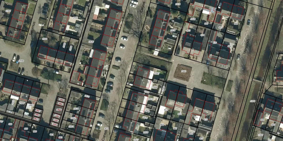 Het perceel waarop Corvus 14 staat heeft een oppervlakte van 225 m². Dit is een middelgroot perceel. De perceeloppervlakte wordt geregistreerd door het Kadaster. Gedetailleerde informatie over de maten van dit perceel kunt u vinden in het rapport Kadastrale kaart met maatvoering van Corvus 14.
