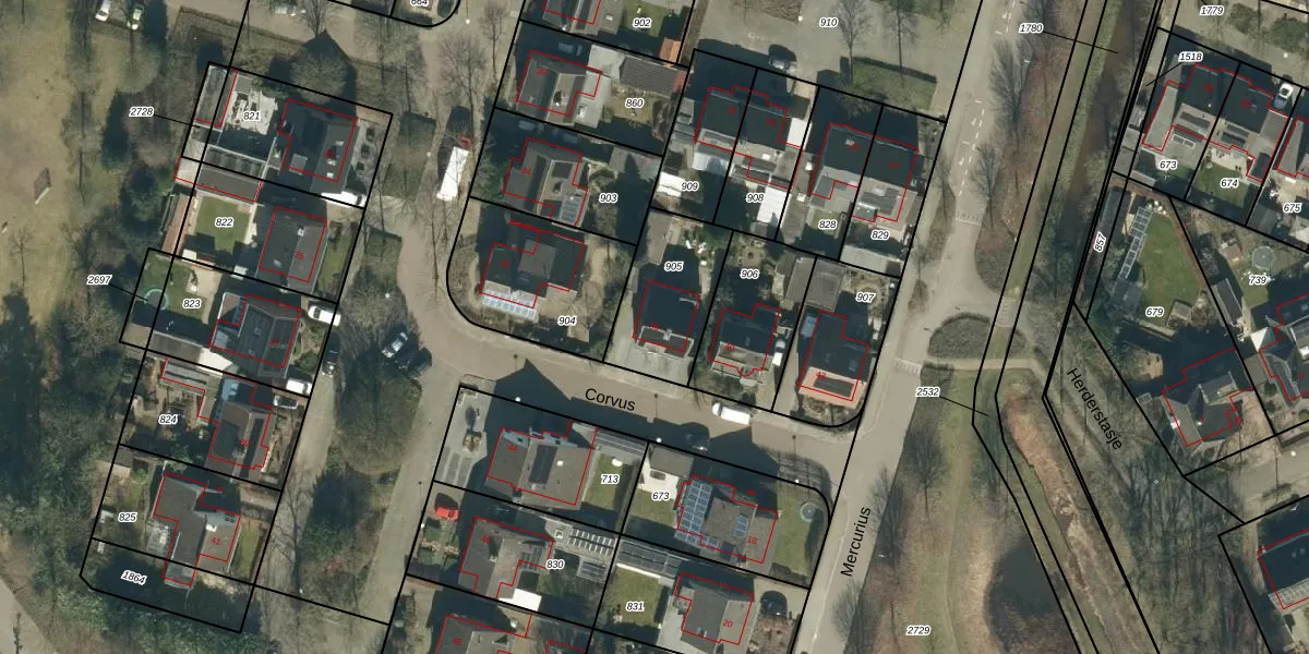 Het perceel waarop Corvus 38 staat heeft een oppervlakte van 333 m². Dit is een groot perceel. De perceeloppervlakte wordt geregistreerd door het Kadaster. Gedetailleerde informatie over de maten van dit perceel kunt u vinden in het rapport Kadastrale kaart met maatvoering van Corvus 38.