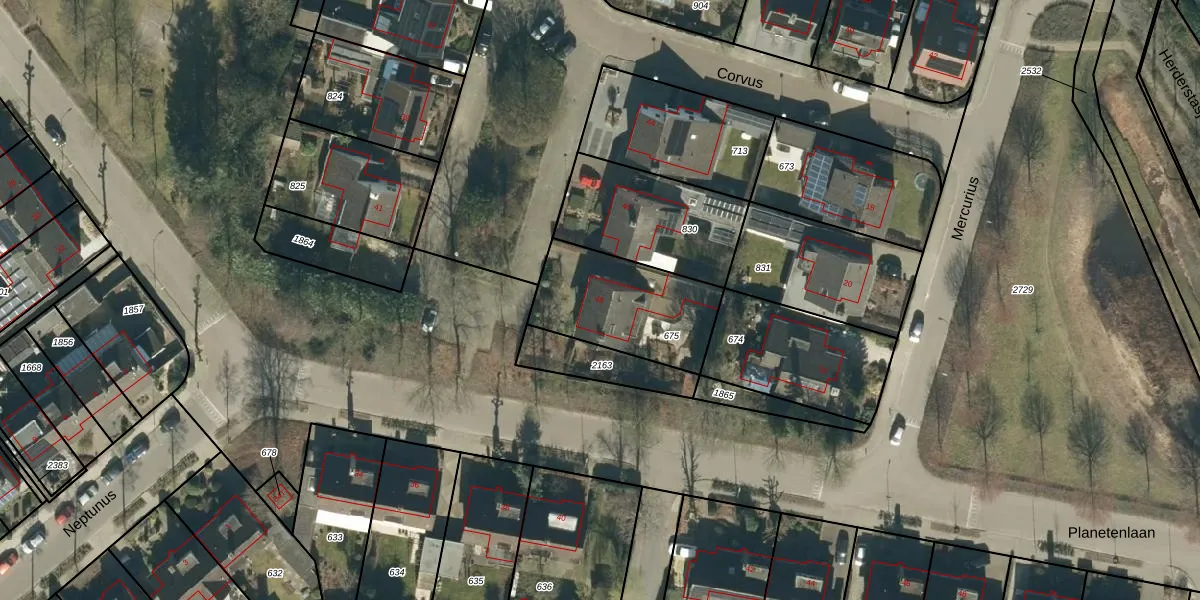 Het perceel waarop Corvus 48 staat heeft een oppervlakte van 451 m². Dit is een groot perceel. De perceeloppervlakte wordt geregistreerd door het Kadaster. Gedetailleerde informatie over de maten van dit perceel kunt u vinden in het rapport Kadastrale kaart met maatvoering van Corvus 48.
