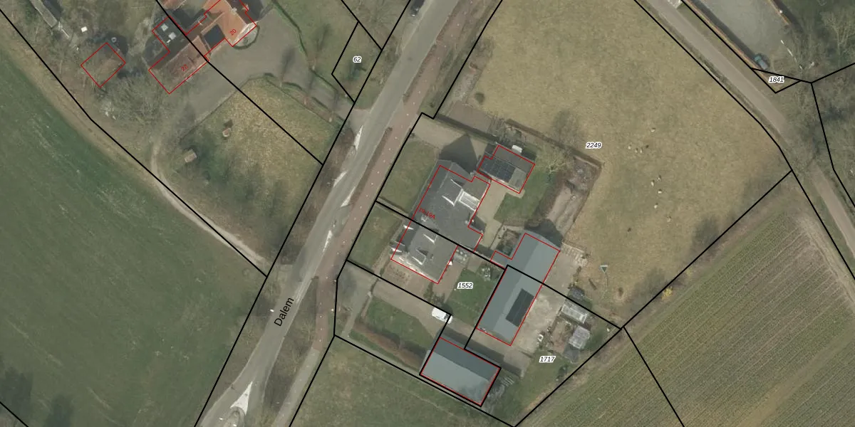 Het perceel waarop Dalem 19 staat heeft een oppervlakte van 4825 m². Dit is een zeer groot perceel. De perceeloppervlakte wordt geregistreerd door het Kadaster. Gedetailleerde informatie over de maten van dit perceel kunt u vinden in het rapport Kadastrale kaart met maatvoering van Dalem 19.