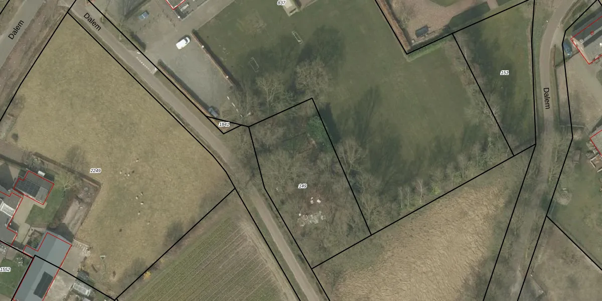 Het perceel waarop Dalem 21 staat heeft een oppervlakte van 1260 m². Dit is een zeer groot perceel. De perceeloppervlakte wordt geregistreerd door het Kadaster. Gedetailleerde informatie over de maten van dit perceel kunt u vinden in het rapport Kadastrale kaart met maatvoering van Dalem 21.