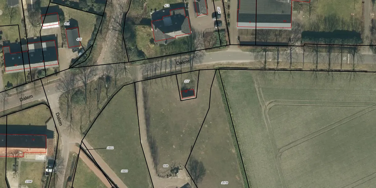 Het perceel waarop Dalem 38 staat heeft een oppervlakte van 150 m². Dit is een middelgroot perceel. De perceeloppervlakte wordt geregistreerd door het Kadaster. Gedetailleerde informatie over de maten van dit perceel kunt u vinden in het rapport Kadastrale kaart met maatvoering van Dalem 38.