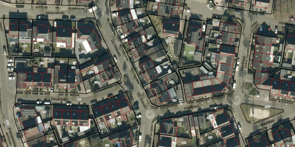 Gebruik de zoekbalk of klik op een perceel voor informatie over de adressen binnen dit perceel.