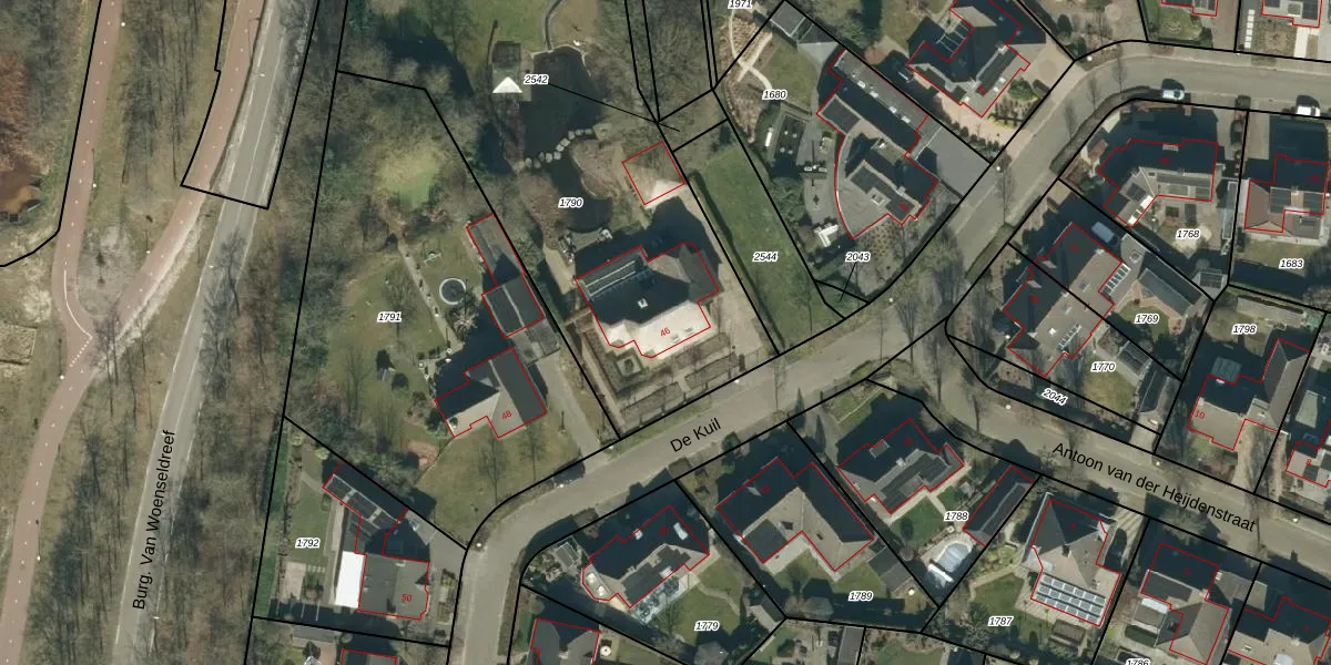 Het perceel waarop De Kuil 46 staat heeft een oppervlakte van 2471 m². Dit is een zeer groot perceel. De perceeloppervlakte wordt geregistreerd door het Kadaster. Gedetailleerde informatie over de maten van dit perceel kunt u vinden in het rapport Kadastrale kaart met maatvoering van De Kuil 46.