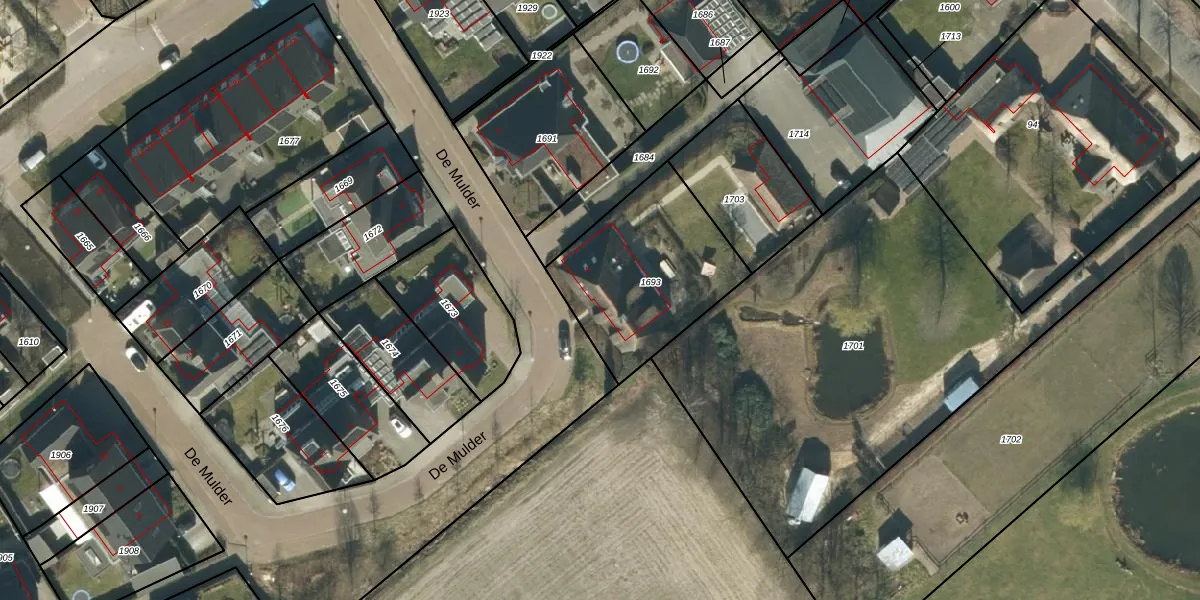 Het perceel waarop De Mulder 4 staat heeft een oppervlakte van 650 m². Dit is een groot perceel. De perceeloppervlakte wordt geregistreerd door het Kadaster. Gedetailleerde informatie over de maten van dit perceel kunt u vinden in het rapport Kadastrale kaart met maatvoering van De Mulder 4.