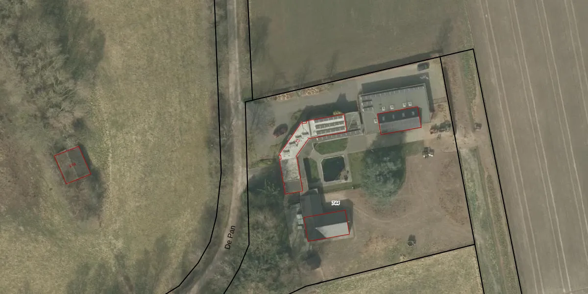 Het perceel waarop De Pan 17 staat heeft een oppervlakte van 5100 m². Dit is een zeer groot perceel. De perceeloppervlakte wordt geregistreerd door het Kadaster. Gedetailleerde informatie over de maten van dit perceel kunt u vinden in het rapport Kadastrale kaart met maatvoering van De Pan 17.