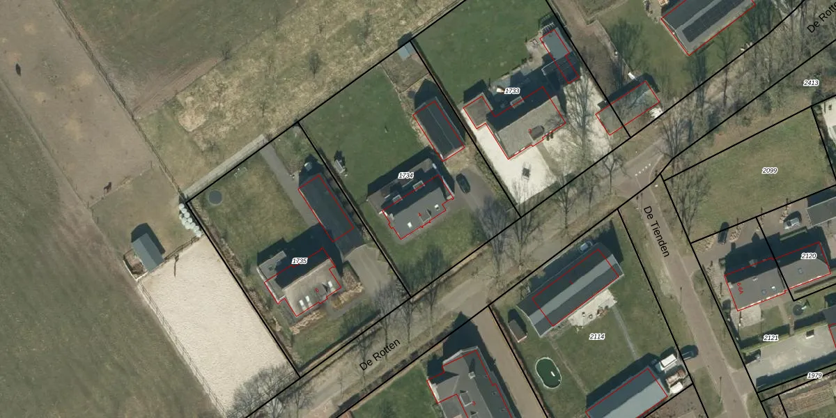 Het perceel waarop De Rotten 4 staat heeft een oppervlakte van 1635 m². Dit is een zeer groot perceel. De perceeloppervlakte wordt geregistreerd door het Kadaster. Gedetailleerde informatie over de maten van dit perceel kunt u vinden in het rapport Kadastrale kaart met maatvoering van De Rotten 4.