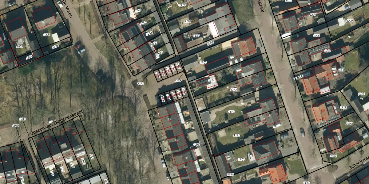 De Voren 12-F is gelegen op kadastraal perceel HGL04F1091. Deze kadastrale aanduiding is uniek en wordt gebruikt door het Kadaster om eigendomsrechten en andere zakelijke rechten vast te leggen. Het perceel maakt onderdeel uit van de kadastrale gemeente Hoogeloon.