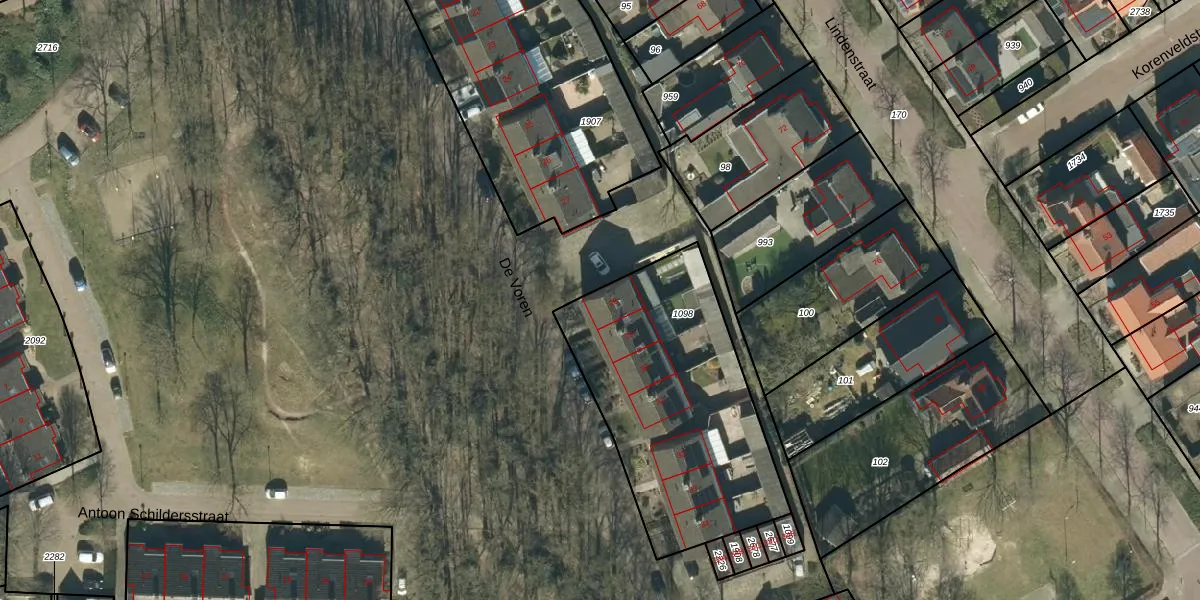 Het perceel waarop De Voren 28 staat heeft een oppervlakte van 1142 m². Dit is een zeer groot perceel. De perceeloppervlakte wordt geregistreerd door het Kadaster. Gedetailleerde informatie over de maten van dit perceel kunt u vinden in het rapport Kadastrale kaart met maatvoering van De Voren 28.