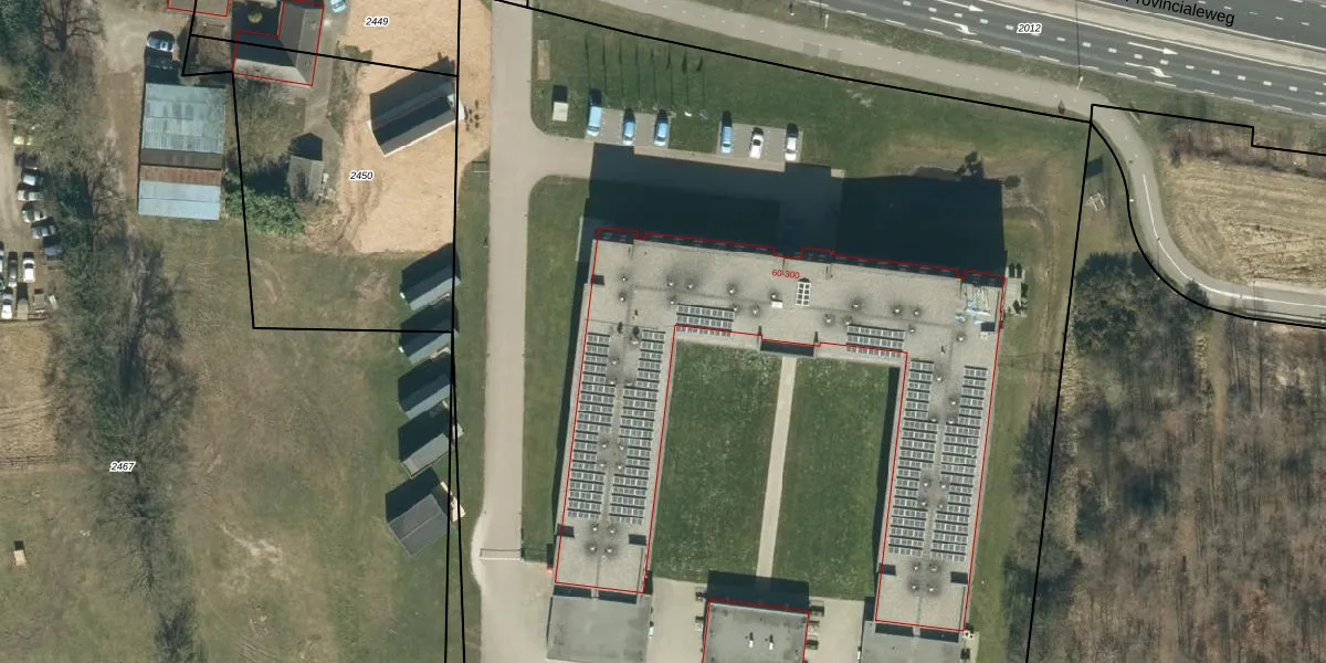 Het perceel waarop De Wijer 106 staat heeft een oppervlakte van 1,6 ha. Dit is een zeer groot perceel. De perceeloppervlakte wordt geregistreerd door het Kadaster. Gedetailleerde informatie over de maten van dit perceel kunt u vinden in het rapport Kadastrale kaart met maatvoering van De Wijer 106.