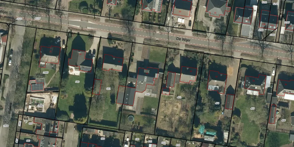 Het perceel waarop De Wijer 18 staat heeft een oppervlakte van 1457 m². Dit is een zeer groot perceel. De perceeloppervlakte wordt geregistreerd door het Kadaster. Gedetailleerde informatie over de maten van dit perceel kunt u vinden in het rapport Kadastrale kaart met maatvoering van De Wijer 18.