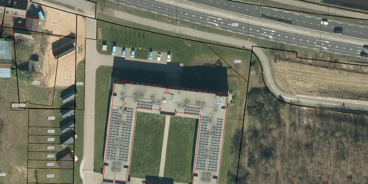Het perceel waarop De Wijer 62 staat heeft een oppervlakte van 1,6 ha. Dit is een zeer groot perceel. De perceeloppervlakte wordt geregistreerd door het Kadaster. Gedetailleerde informatie over de maten van dit perceel kunt u vinden in het rapport Kadastrale kaart met maatvoering van De Wijer 62.