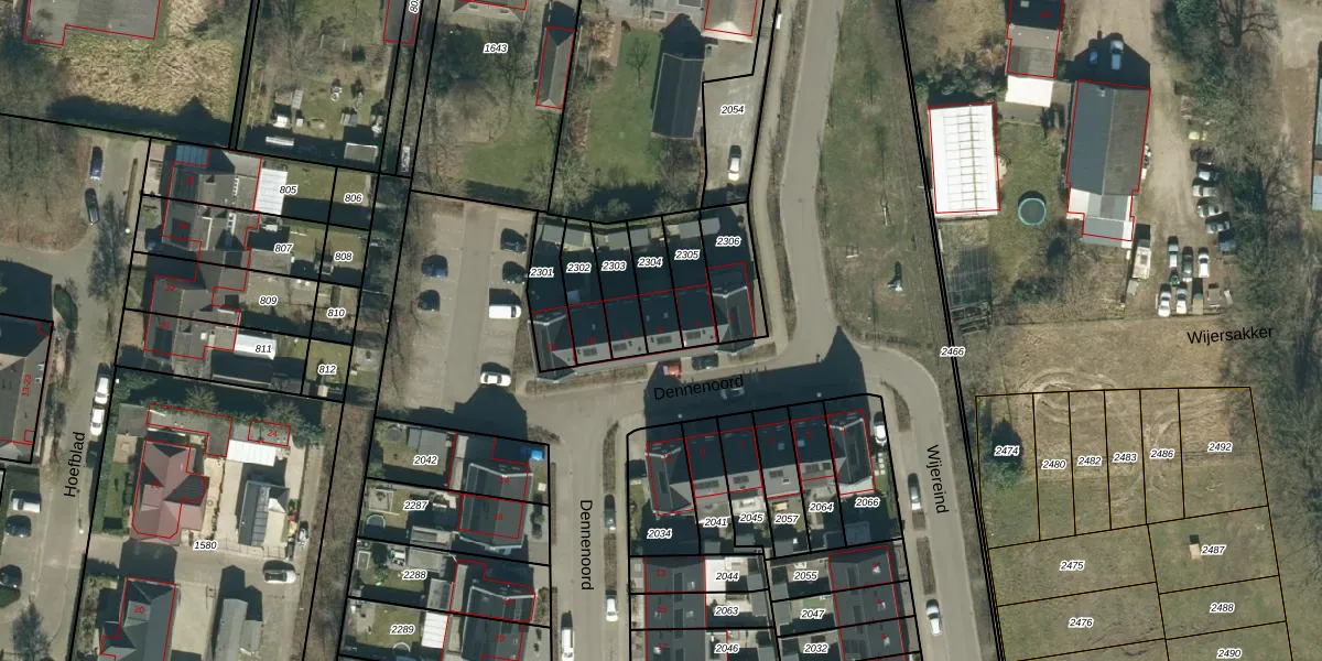 Gebruik de zoekbalk of klik op een perceel voor informatie over de adressen binnen dit perceel.