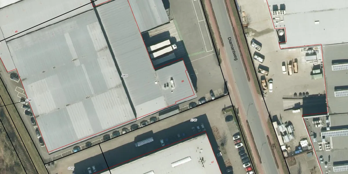 Het perceel waarop Diamantweg 46 staat heeft een oppervlakte van 9295 m². Dit is een zeer groot perceel. De perceeloppervlakte wordt geregistreerd door het Kadaster. Gedetailleerde informatie over de maten van dit perceel kunt u vinden in het rapport Kadastrale kaart met maatvoering van Diamantweg 46.