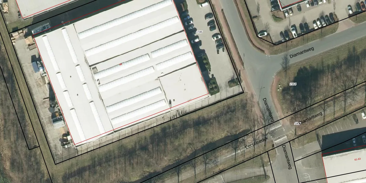 Het perceel waarop Diamantweg 48 staat heeft een oppervlakte van 8300 m². Dit is een zeer groot perceel. De perceeloppervlakte wordt geregistreerd door het Kadaster. Gedetailleerde informatie over de maten van dit perceel kunt u vinden in het rapport Kadastrale kaart met maatvoering van Diamantweg 48.