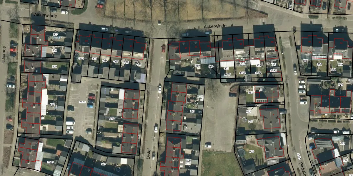 Het perceel waarop Distel 1 staat heeft een oppervlakte van 681 m². Dit is een groot perceel. De perceeloppervlakte wordt geregistreerd door het Kadaster. Gedetailleerde informatie over de maten van dit perceel kunt u vinden in het rapport Kadastrale kaart met maatvoering van Distel 1.
