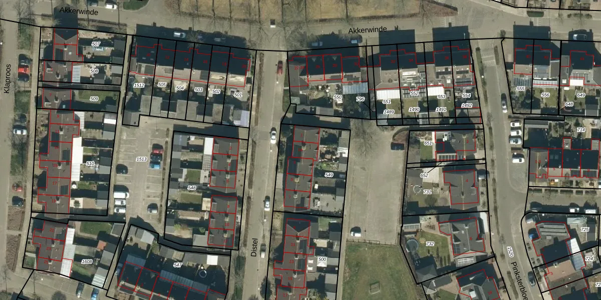 Het perceel waarop Distel 1-A staat heeft een oppervlakte van 681 m². Dit is een groot perceel. De perceeloppervlakte wordt geregistreerd door het Kadaster. Gedetailleerde informatie over de maten van dit perceel kunt u vinden in het rapport Kadastrale kaart met maatvoering van Distel 1-A.